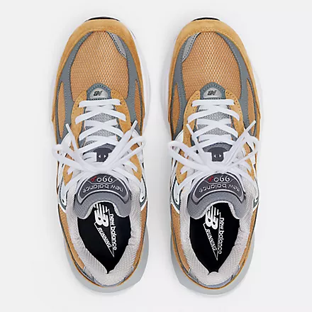 This model runs large, you may consider ordering down from your normal size.The designers of the first 990 were tasked with creating the single best running shoe on the market. The MADE in USA 990v6 embraces this original mandate, with a series of performance-inspired updates. The upper dispenses with the standard midfoot saddle, allowing the pigskin and synthetic overlays to flow from heel to toe across the mesh underlay, for a speedy, streamlined look. While the evolved design marks one of the most dramatic changes from one generation model to the next that the 990 has ever seen, the greatest leap forward occurs on the inside. The addition of FuelCell midsole cushioning means that the evolution of the 990 can be felt as much as it can be seen.